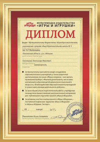 - участие во Всероссийском проекте мультимедийного издательства «Игры и игрушки» - «Создание условий для реализации регионального компонента с учётом ФГОС». Диплом образовательному учреждению. Сертификаты 5 участникам
